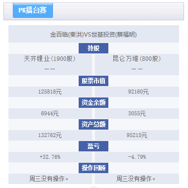 09:17 PK台:蔡福明、秦洪盘前仓位及收益情况
