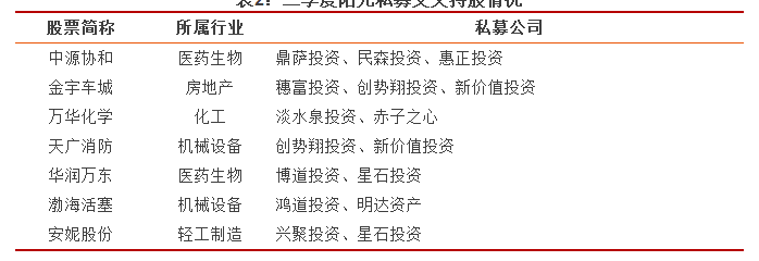 表2:三季度阳光私募交叉持股情况