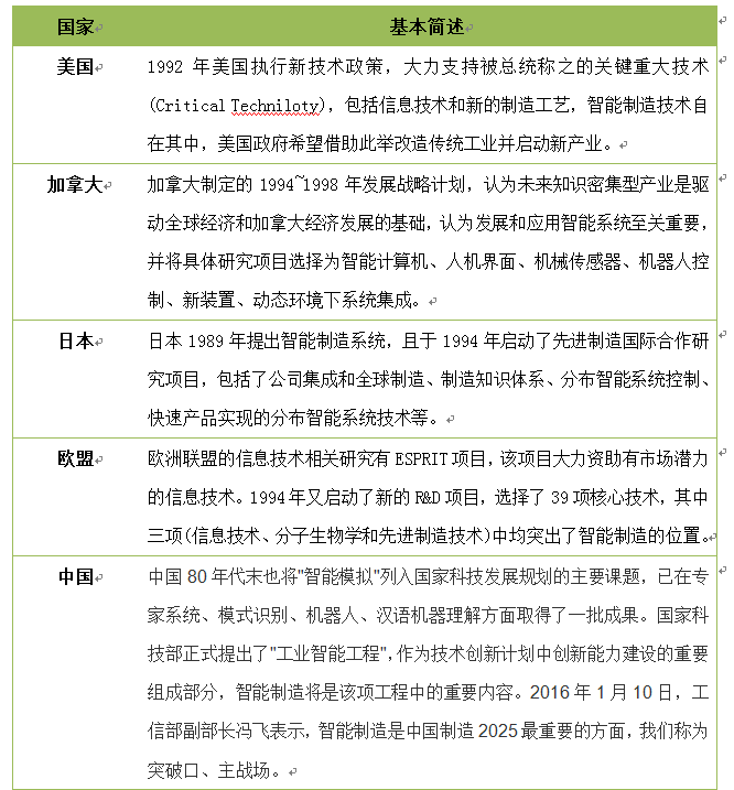 表1:部分国家推动智能制造的历史情况