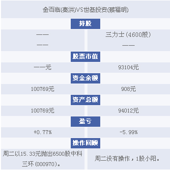 15:47 PK台:蔡福明、秦洪盘后仓位及收益情况: