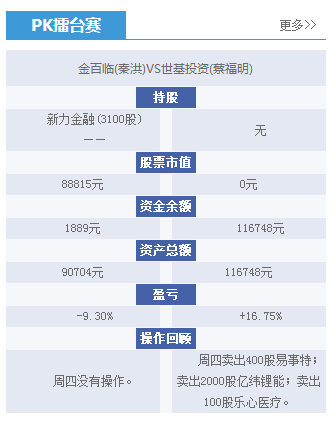 PK台:蔡福明、秦洪盘前仓位及收益情况