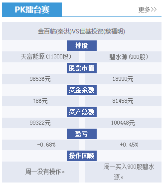 PK台:蔡福明、秦洪盘前仓位及收益情况