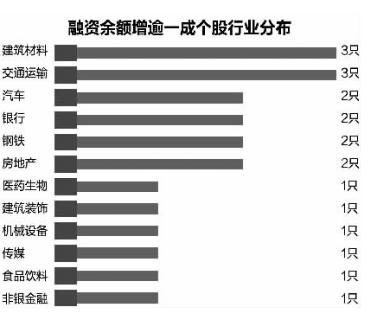 融资余额增逾一成个股分布于12个申万一级行业。交通运输、建筑材料等行业相对扎堆,均包含3只;汽车、银行、钢铁、房地产等各涵盖2只。