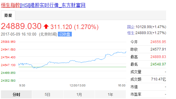 中国证券网讯 恒指9日震荡走高。截至收盘,恒生指数报24889.03点,上涨1.27%,剑指24900点,刷新21个月新高,国企指数报10128.99点,上涨1.47%。