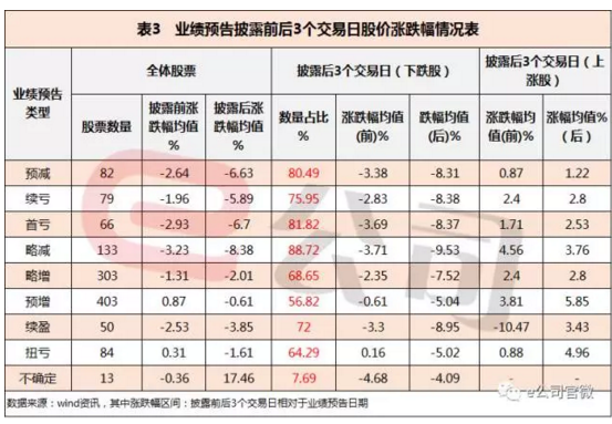进一步对比业绩预告后上涨和下跌股票可见,利好和利空消息对股价涨跌幅的冲击非常大,对利空下跌股和利好上涨股的业绩预告前后的涨跌幅做相关性分析发现,相关系数高达0.96,属于强正相关。
