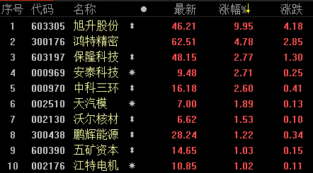 中国证券网讯 25日早盘,特斯拉概念股走强,截至发稿,旭升股份涨停,鸿特精密涨4.78%,保隆科技、安泰科技、中科三环涨逾2%,天汽模、五矿资本、沃尔核材等个股涨逾1%。