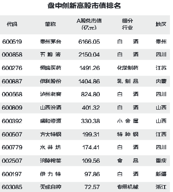 12股盘中创历史新高 白酒股占据半壁江山
