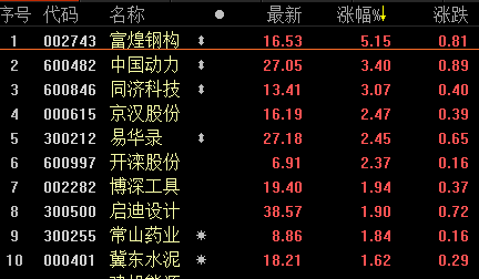 中国证券网讯 17日早盘,雄安概念股走强。截至发稿,富煌钢构涨逾5%,京汉股份、太空板业、青龙管业、国统股份、北京利尔、南国置业、东方能源等个股均有拉升表现。