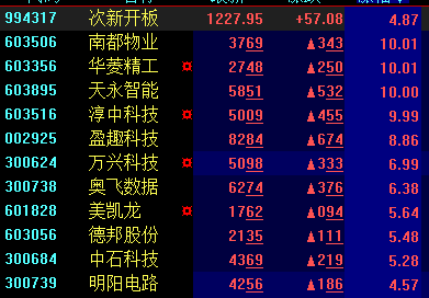 中国证券网讯 12日消息,今日次新股早盘走强。截至发稿,南都物业、华菱精工、天永智能、淳中科技等涨停,盈趣科技、万兴科技、奥飞数据、美凯龙、德邦股份等多股涨逾5%。