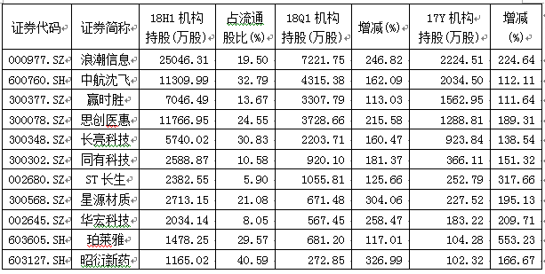 此外,七类机构持股半年报较一季报、一季报较2017年年报增持幅度均超过100%,且2017年年报七类机构持股数在100万股以上的个股有11只(见下表)。这些个股为机构持续聚焦,或可跟踪。