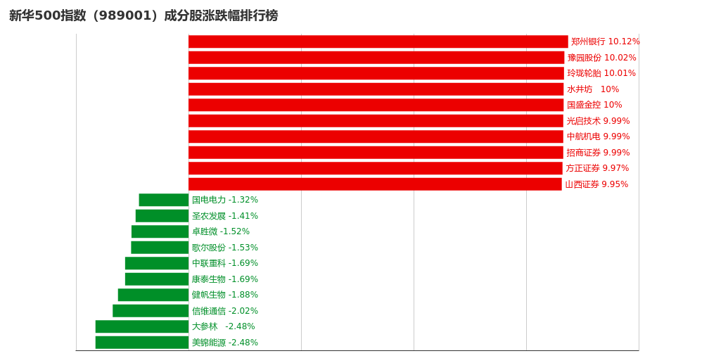 12月31日,新华500指数(989001)收盘报5546.57点,涨1.90%,成交额4771.60亿元;郑州银行,豫园股份,玲珑轮胎领涨。