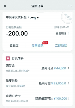 “当时,中信银行的工作人员明明跟我说,信用卡只要不激活就不会收费。”张先生近日向记者直倒苦水。因为工作需要,张先生去年在中信银行办理了一张借记卡。架不住银行工作人员的游说,张先生同步办理了一张中信深航联名金卡,但自始至终没有激活过。