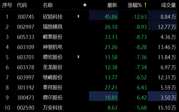 汽车零部件板块震荡走低 欣锐科技跌近13%