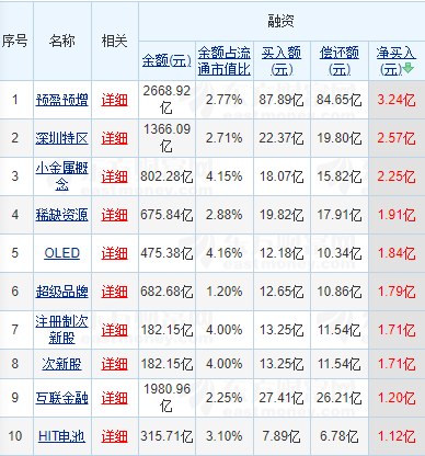 昨日预盈预增等概念板块融资净买入额居前