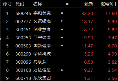 医疗信息化概念板块早盘拉升 嘉和美康上涨超17%