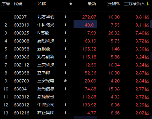 上证报中国证券网讯 据Choice金融终端数据,3月29日14时41分,有13只个股的主力资金净流入额超过2亿元。北方华创居首,主力资金净流入超8亿元。