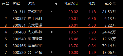 上证报中国证券网讯 截至5月17日14时43分,申万一级行业板块中,机械设备板块走强,昆船智能、理工光科、交大思诺均20cm涨停,光力科技、蜀道装备等跟涨。
