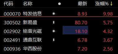 光通信模块概念股震荡拉升 特发信息午后涨停