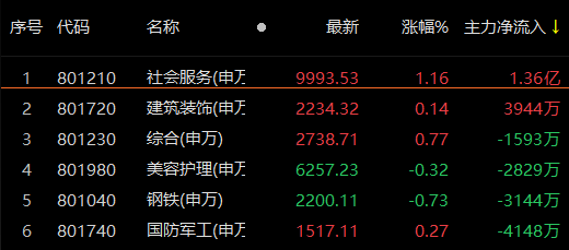 上证报中国证券网讯 据Choice金融终端数据,截至5月31日14时19分,申万一级行业板块中,社会服务板块主力净流入超1亿元,达1.36亿元。