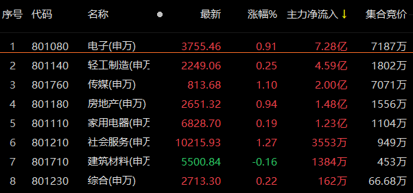 5大行业板块主力净流入超1亿元 电子板块主力净流入居首 超7亿元