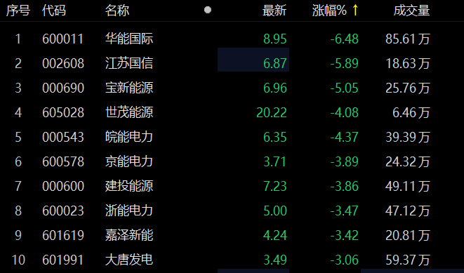 上证报中国证券网讯 6月12日,电力板块午后走低,截至13:51,华能国际跌超6%,宝新能源、江苏国信等跌超5%。