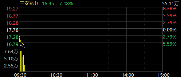 三安光电快速走低跌超8%