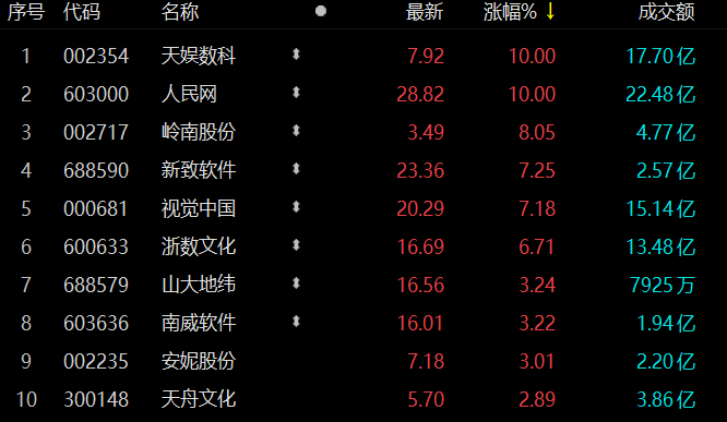 上证报中国证券网讯 6月13日,数据确权板块震荡走强,截至11:05,人民网、天娱数科涨停,浙数文化、视觉中国等涨超6%。