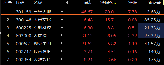 数据确权概念板块迅速拉升 三维天地20cm涨停