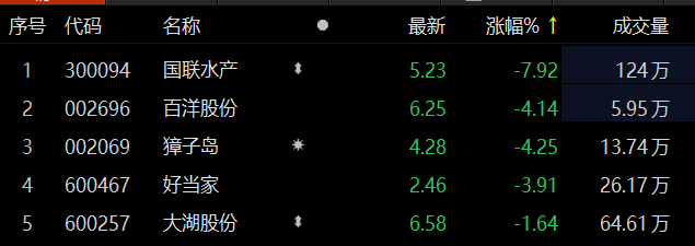 水产养殖板块震荡走低 国联水产跌近8%