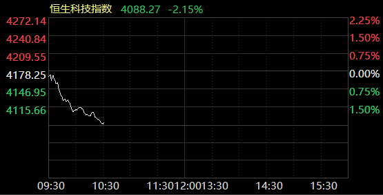 恒生科技指数跌超2% 小鹏汽车跌超7%