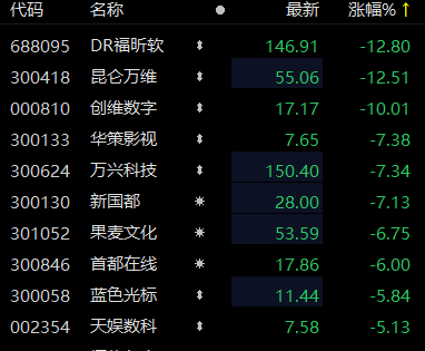 AIGC概念股持续走低 昆仑万维、福昕软件跌超12%