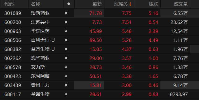 医药股震荡反弹 拓新药业、江苏吴中涨超7%
