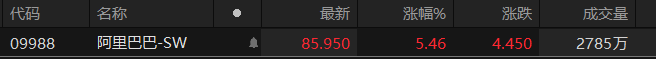 阿里巴巴港股午后拉升冲高 现涨超5%