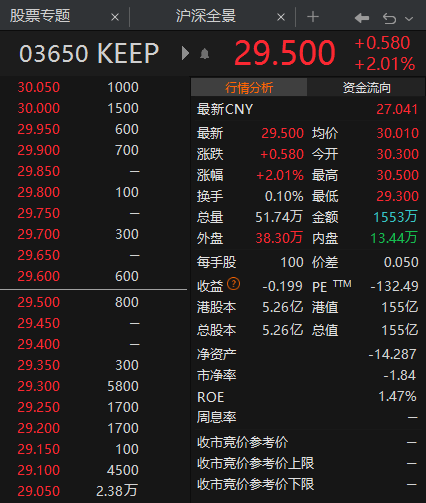 上证报中国证券网讯 7月12日,运动科技公司KEEP挂牌港股上市,开盘走高。9时45分,KEEP上涨2.01%。