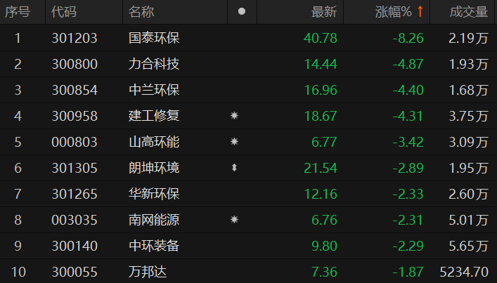 上证报中国证券网讯 7月18日,环保板块震荡走弱,截至9:44,国泰环保跌超8%,中兰环保、力合科技、建工修复等跌超4%。
