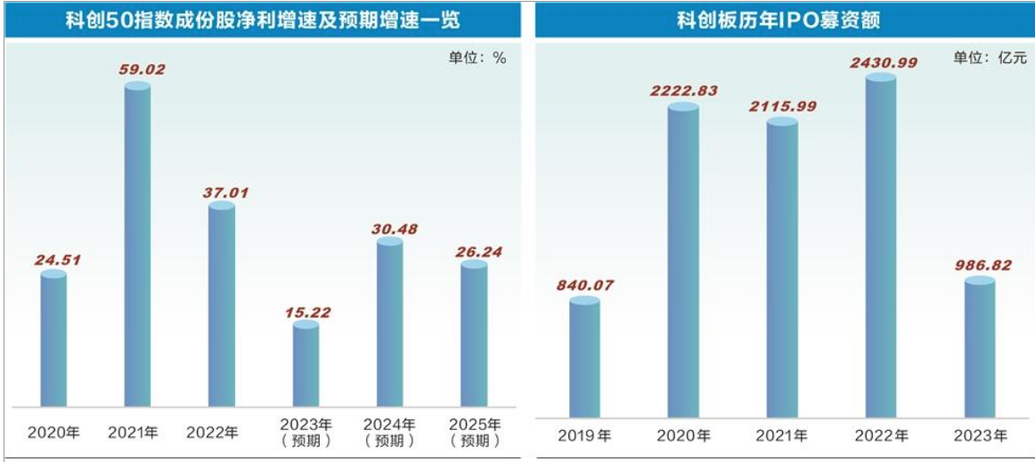 展望未来,科创板成长动能依旧强劲。根据机构一致预测,科创50指数成份股今年、明年及2025年净利增速分别达到15.22%、30.48%、26.24%。