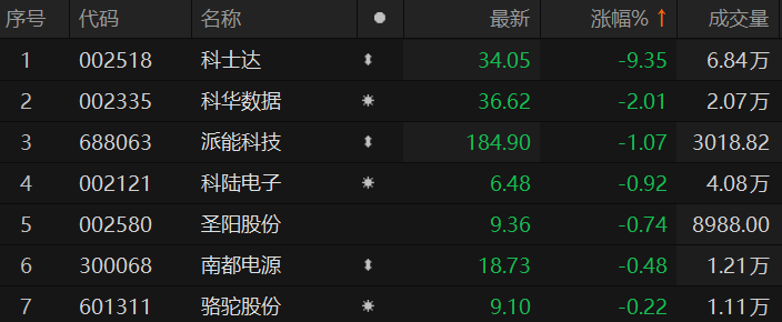 储能板块震荡走低 科士达跌超9%