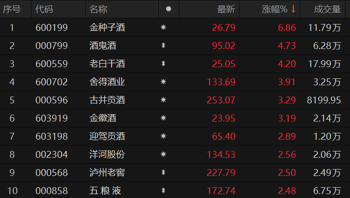 白酒股走强 金种子酒涨近7%