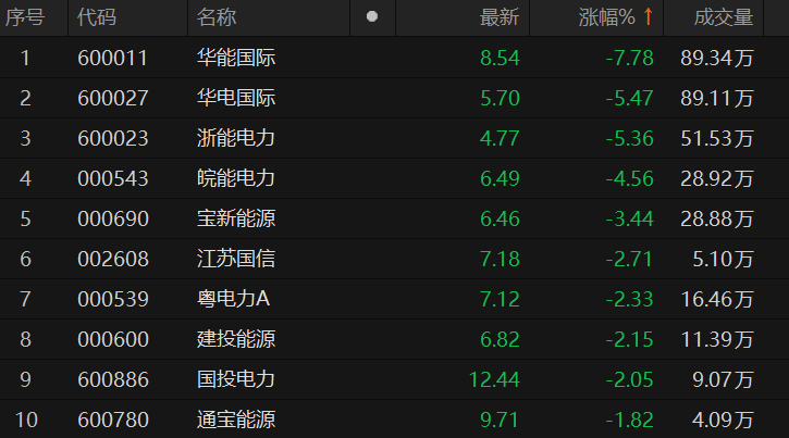 上证报中国证券网讯 7月25日,电力股震荡走低,截至10:25,华能国际跌近8%,浙能电力、华电国际跌超5%,皖能电力、宝新能源等跟跌。