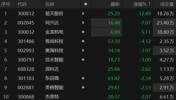 上证报中国证券网讯 7月27日,消费电子板块走低,截至13:23,易天股份跌超12%,金龙机电、致尚科技等跌超4%。