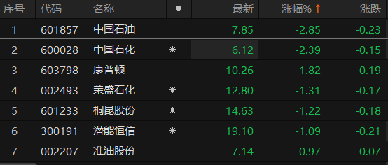 石油石化板块早盘领跌 中国石油、中国石化跌超2%