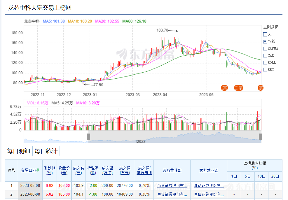 上证报中国证券网讯 据东方财富Choice数据,龙芯中科8月8日大宗交易300万股,成交金额3.12亿元,成交均价103.95元,折价率1.93%。