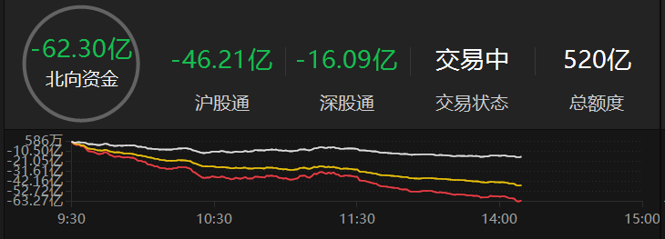上证报中国证券网讯 8月16日14时09分,北向资金净卖出超60亿元,其中沪股通渠道净卖出46.21亿元,深股通渠道净卖出16.09亿元。