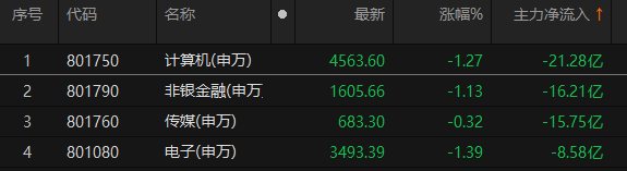 三大板块主力资金净流出额超10亿元 计算机板块超20亿元居首