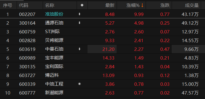 石油板块探底回升 准油股份冲击涨停