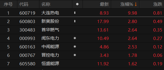 A股公用事业板块涨幅居前 大连热电涨停