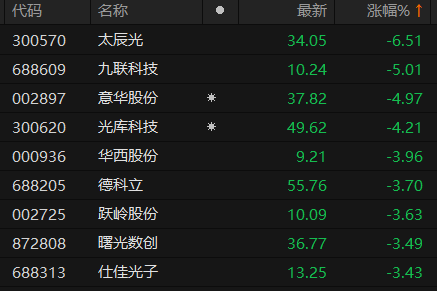 A股CPO概念股震荡下挫 太辰光跌超6%