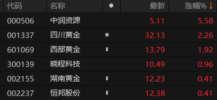 A股贵金属板块午后异动拉升 中润资源涨超5%