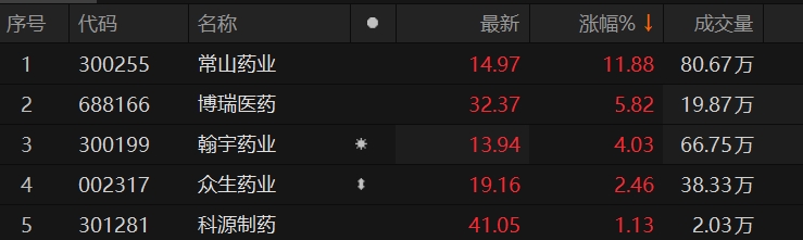上证报中国证券网讯 10月9日,减肥药概念股探底回升,截至10时08分,常山药业涨超11%,博瑞医药、翰宇药业涨超4%。