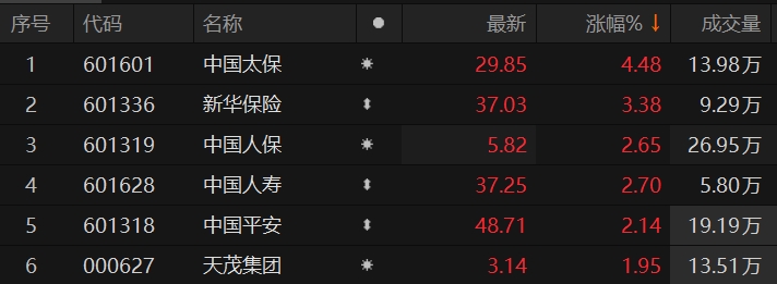 保险板块震荡上行 中国太保涨超4%